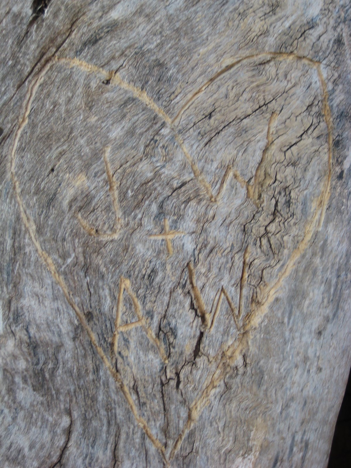I get to scratch off #35 on my list (See The List below). The traditional gift for a 5th anniversary is wood so Jason and I met up this afternoon at my favorite place (I need a name for this place I love, so any suggestions send my way). I took a basket of rice krispy treats, his favorite, and a pocketknife. We carved our initials in that old cottonwood tree, branding it with our love forever.