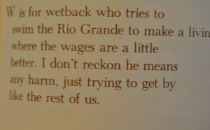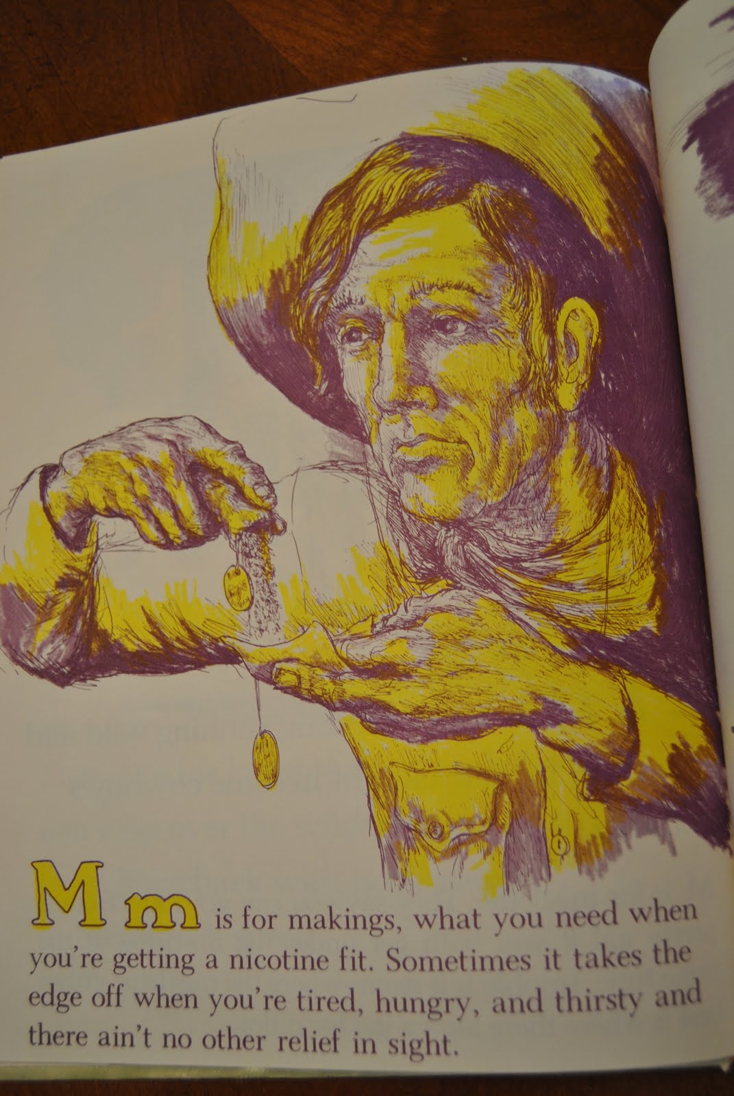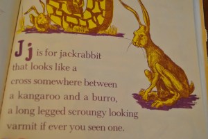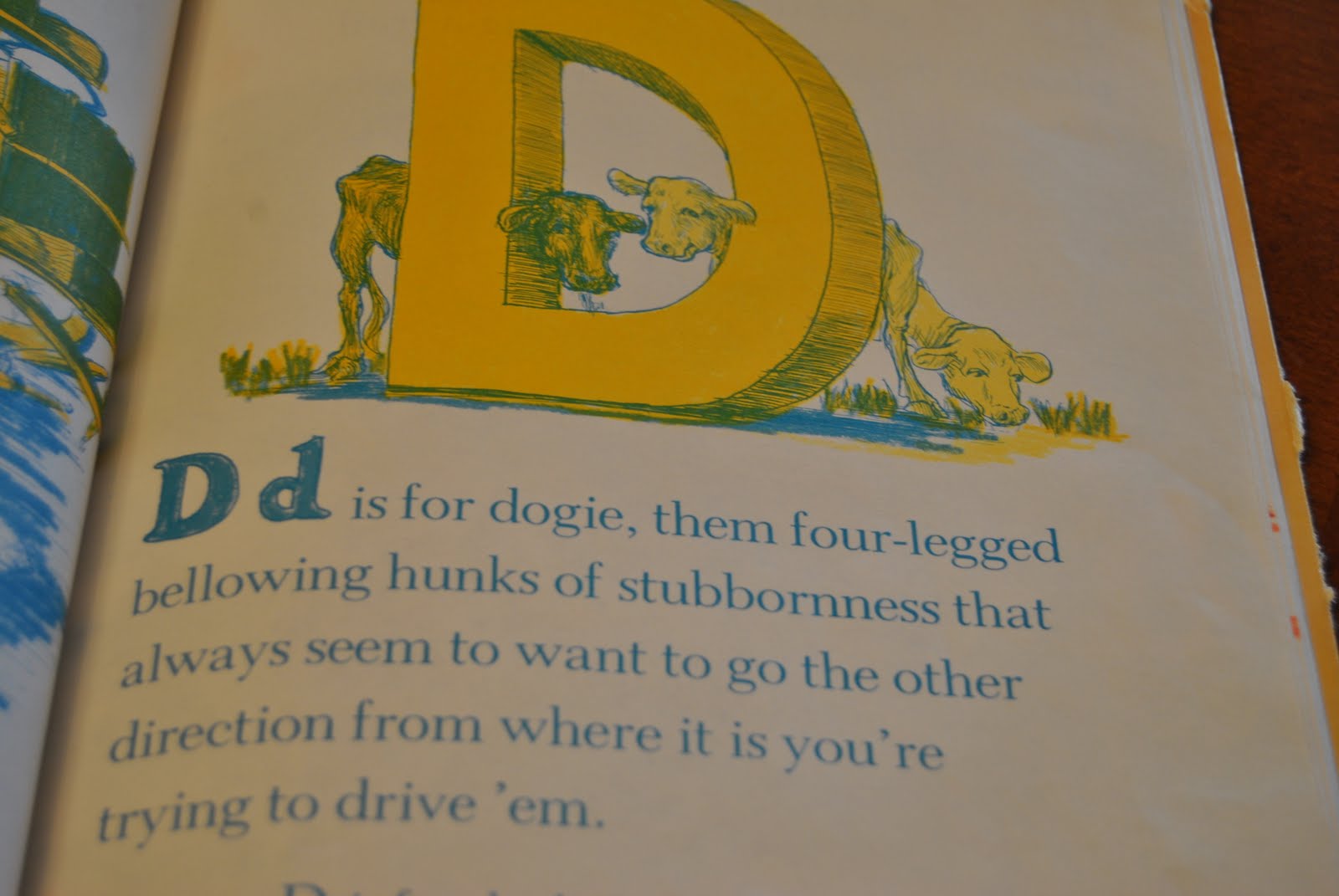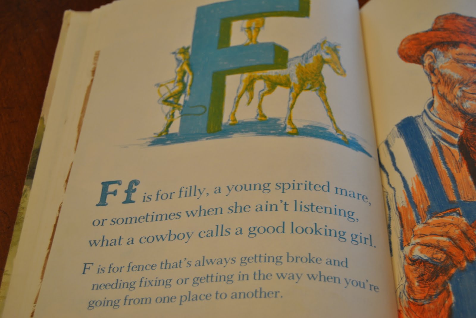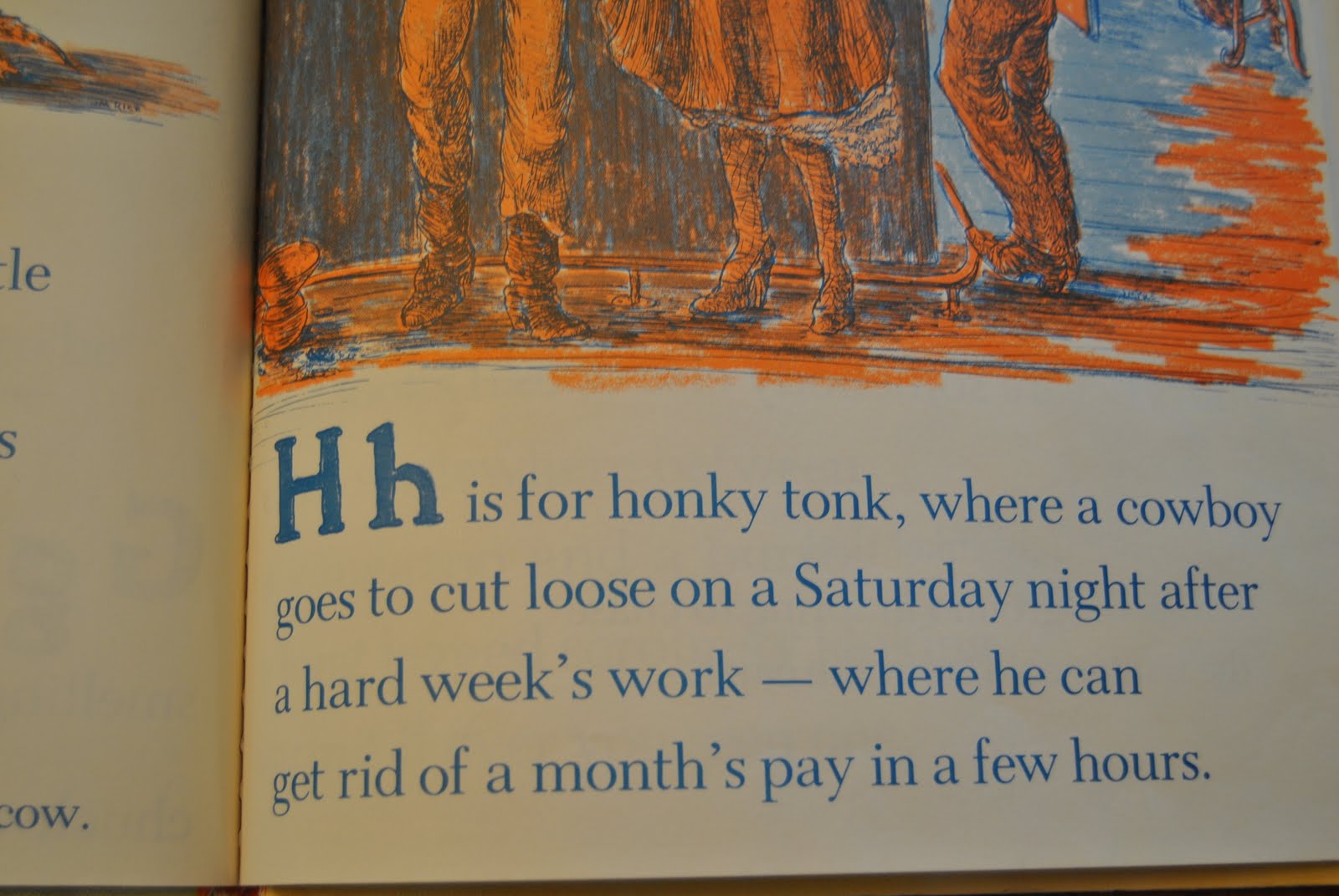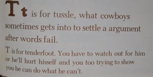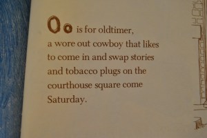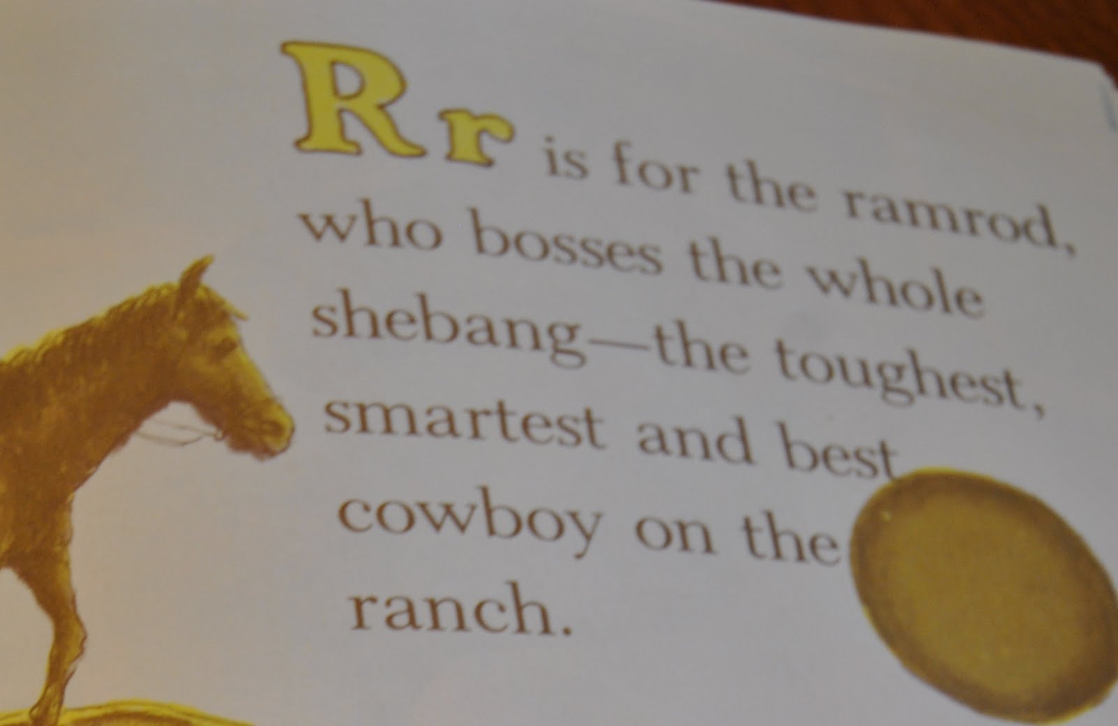So the Cowboy ABC book goes on to talk about the standard cowboy words like jerky, mustangs, things you expect in a children’s book.