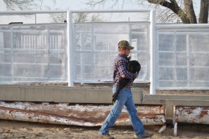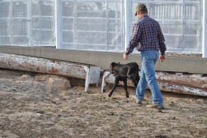So Jason forces it, in an attempt to see if this cow will adopt the calf.