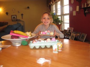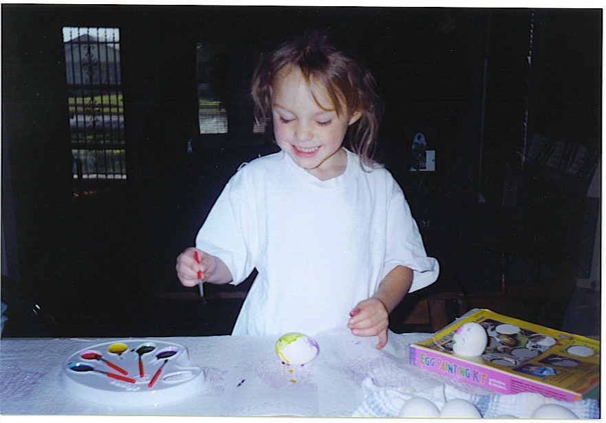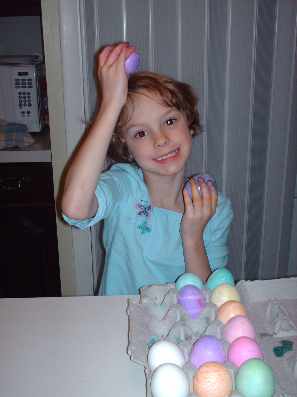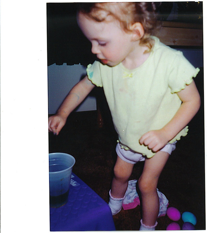 From back when her 2T training panties were too big and the eggs were dipped in a solid color. It appears she’s dropped a big old load in those underpants, but really it’s just that she has the butt of a frog.