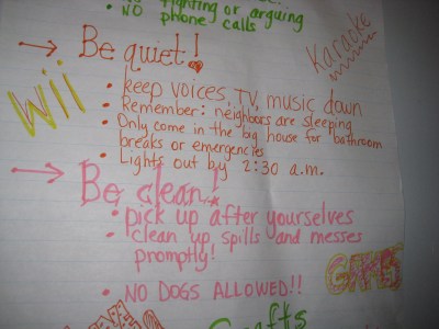 First, I made a few rules, because I’m a teacher that’s why.  And children need boundries, very tight ones.   Then, I hung them on their door.
