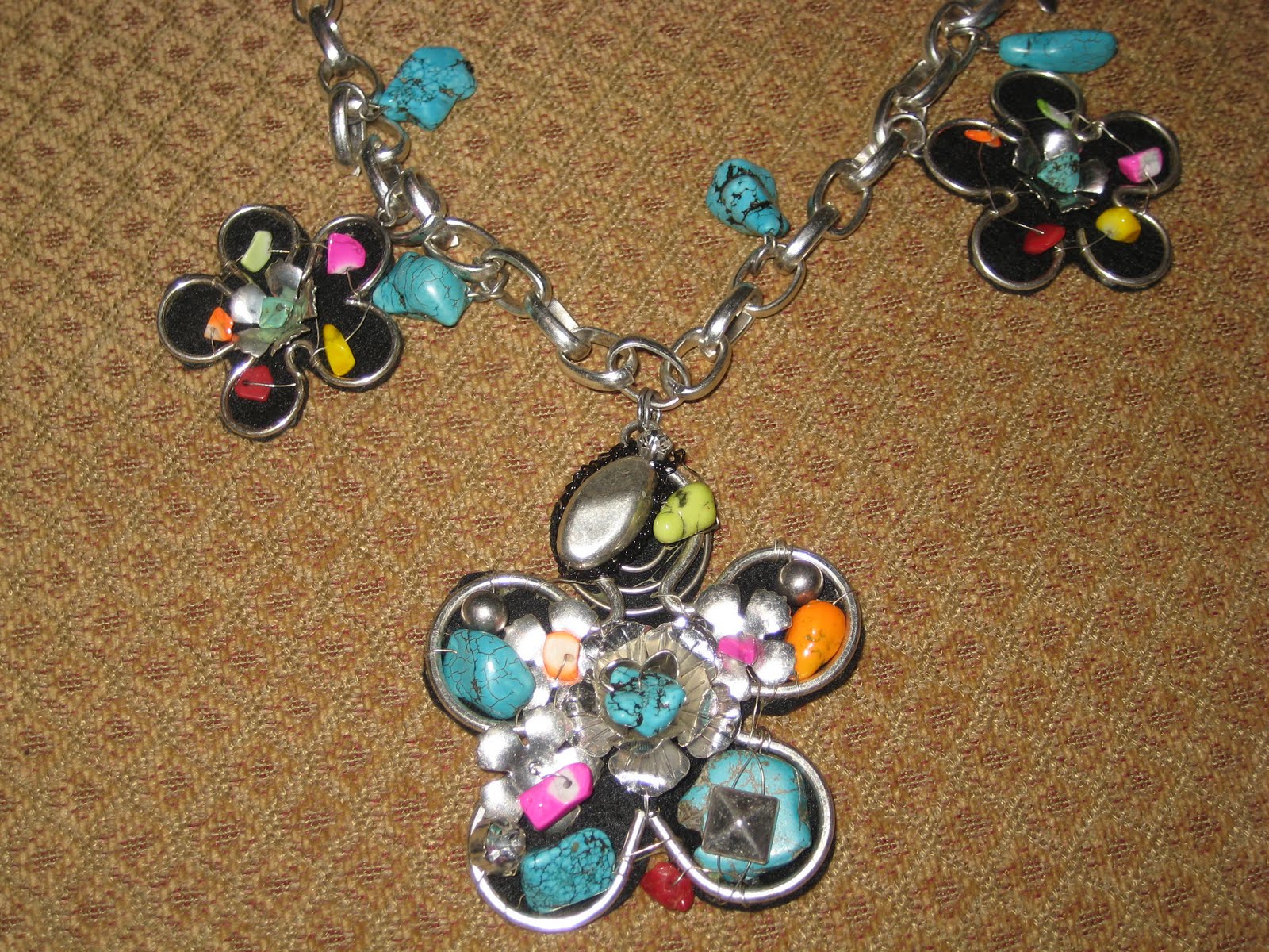 But I crossed paths with a necklace a couple of weeks ago that made me swoon. My heart beat rapidly. I fell in love with it. It was clunky, funky, chunky, and gawdy. But gawdy in a good way. The price tag on it was a little more than I cared to spend on jewelry. I prefer the 25 cent machines in the foyer of the Pizza Hut,that is more my speed.