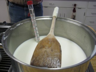 On Sunday, I had a wonderful experience of meeting a fellow named Tom and making goat cheese right in his kitchen.