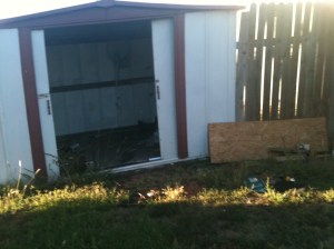 This is my real coop before it was a coop. I’d show you a better picture, except I don’t have one. So mentally take the trash out of the yard, the fishing net out of the shed, and put chickens all around. It looks just as bad as a coop as it did before.