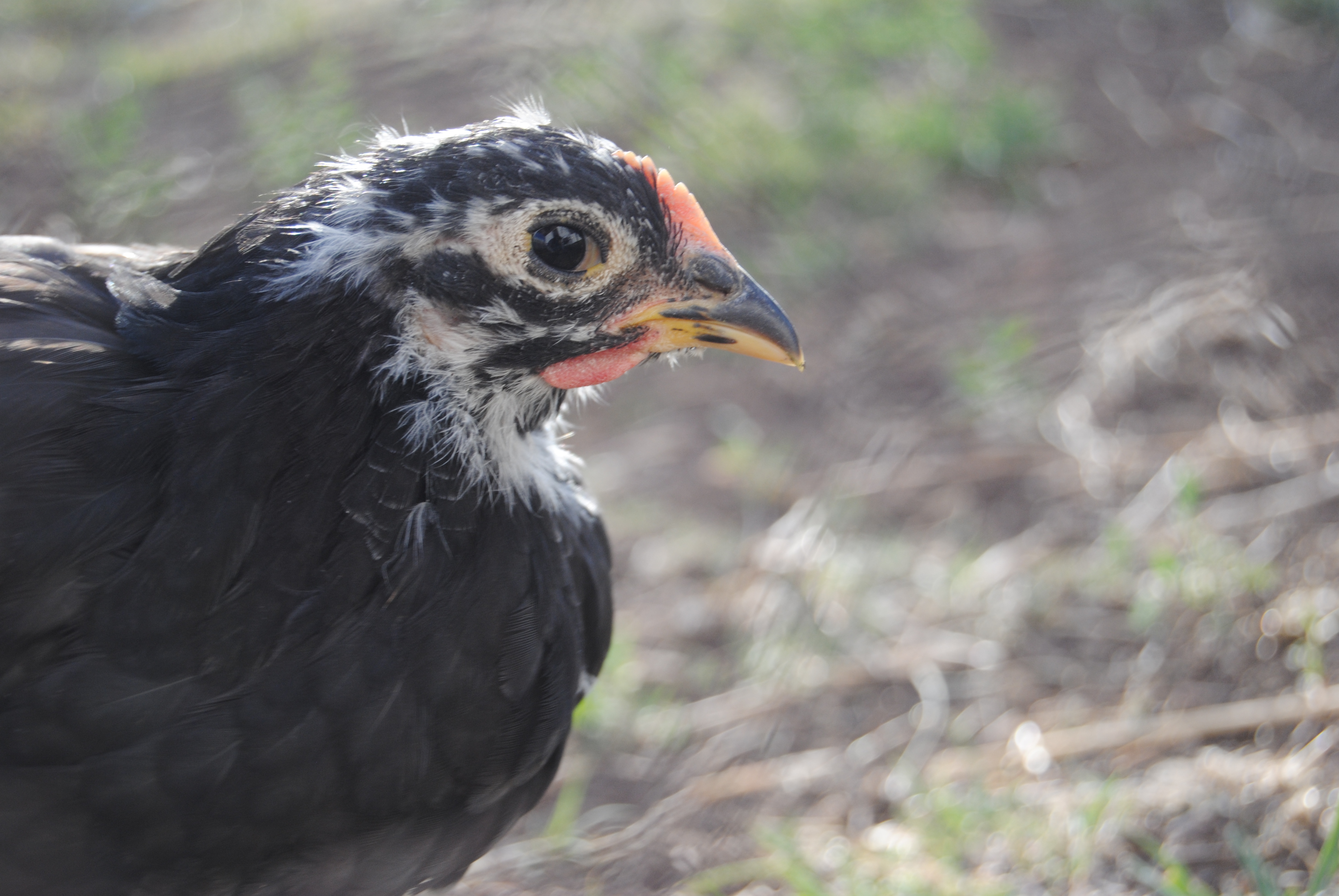 As you can see, if you look very, very closely, the black Australorps are barely developing their combs and wattles, like this one.