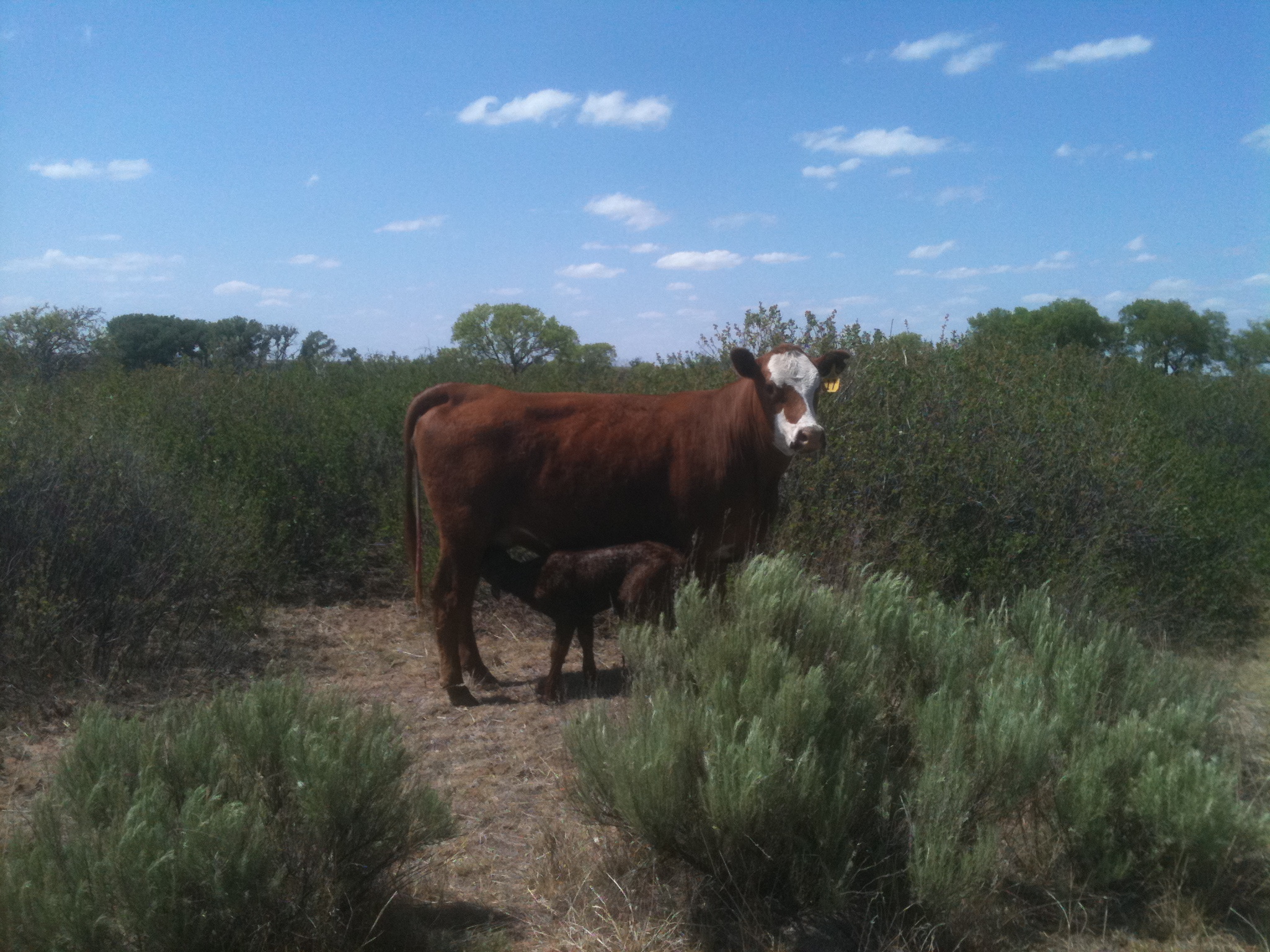 I accompanied him the other day. The cows who remain pregnant gather around the truck looking for a handout. The heifers who have calved usually are hidden out with their babies somewhere, or they leave the babies hid out to come get a handout.