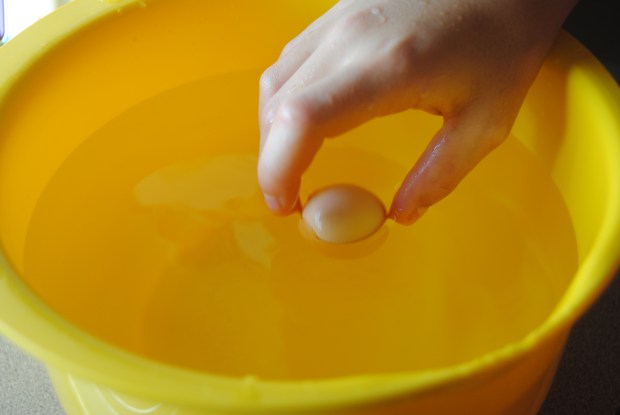 Since there were four eggs, I assumed they might be from one hen, and have possibly been sitting in a the summer heat for a few days, so my niece and I did the egg freshness test.
