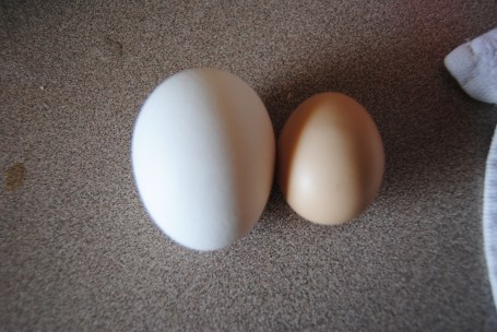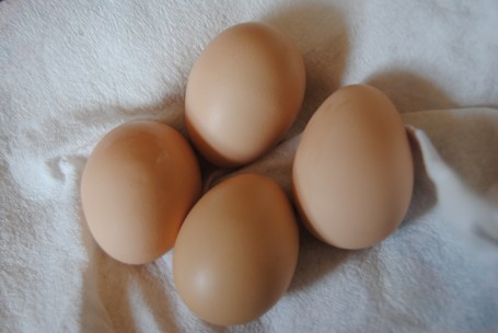 With a taste nothing like store-bought eggs. Much richer. I was a bit leery at first, wondering if it’s safe to eat the first eggs, but we did anyway, and we didn’t even get salmonella or botulism or anything.