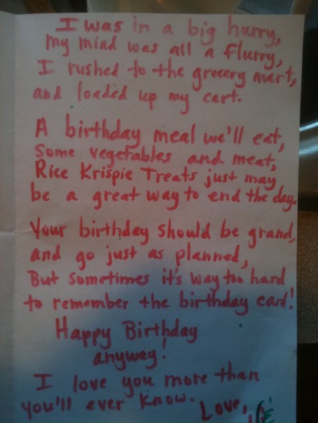 Remember when you were a little kid and made homemade cards? I’m still doing that. Especially after I’ve already gotten home from town and forgotten the dang thing.