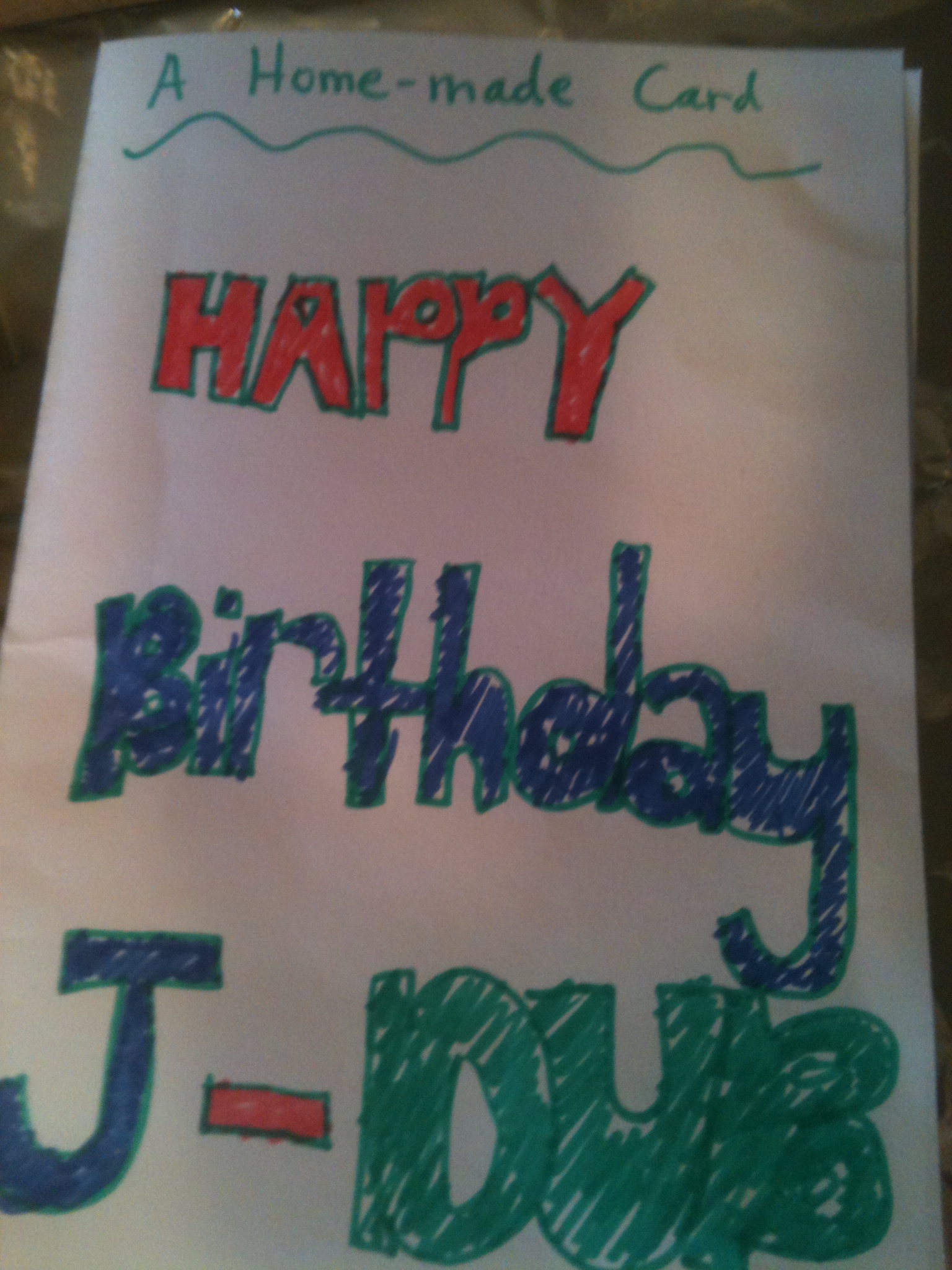 ♪♪♪ Happy Birthday to J-Dub ♪♪♪ I am sure he is all you say he is, and I am positive he is a handsome devil (proof is in the pudding, er, picture). My friend’s husband ALWAYS makes her homemade cards. They are just so cool.