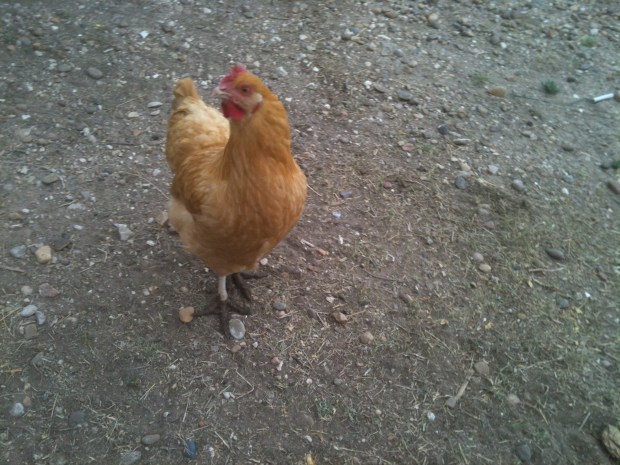 Of course in a situation like this, a lot of necessary tasks are overlooked for a short time, one of which being the chickens. We left the chickens out, as is our custom, to free-range the place. They had plenty of food and water and fresh air. The day after we returned, I quickly went out to do a head count. Thirteen is the magic number. But only twelve chickens did I find. A yellow one was gone.