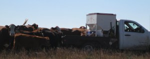 Jason is a good cowboy. He makes sure they get fed. He makes sure they’re all accounted for. He checks for runny noses and other ailments. He has a siren on his truck. They can hear him if they’re too far away and can’t see him. When they hear the siren sound, they come a’trottin. Now, if he’s being very impatient, he’ll drop a load or two of cake (that’s cow food for you dudes out there). When they hear the door to the cake feeder slam, they come a’runnin. Most don’t dawdle when it’s supper time.