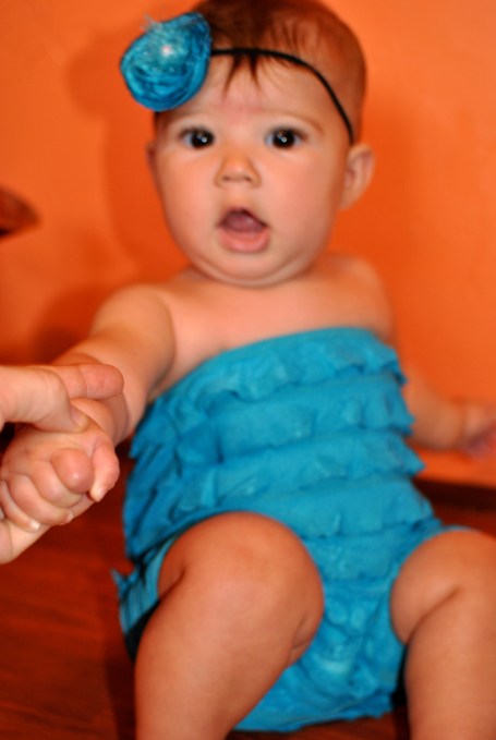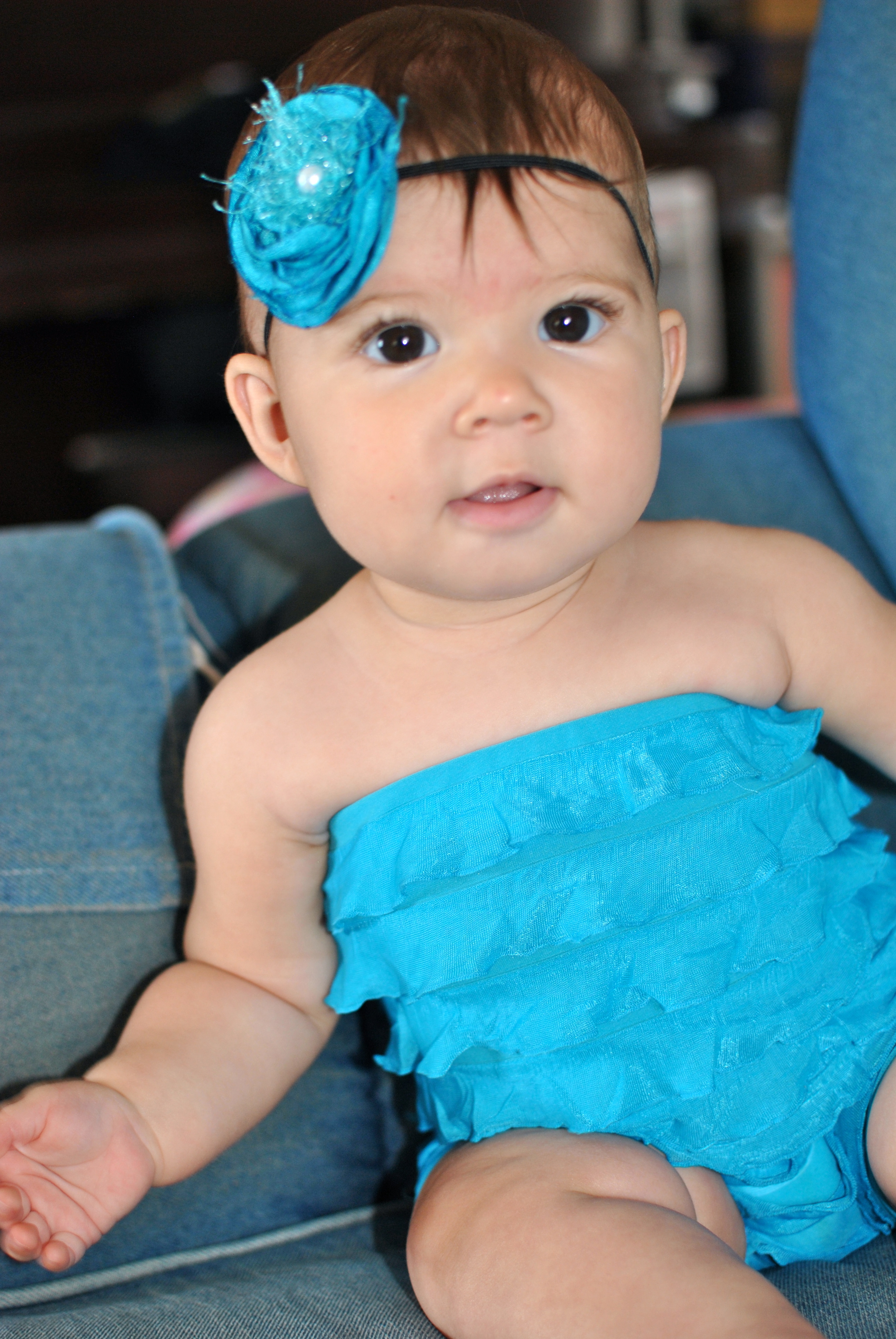 So after 3 bumps, a poke from the safety pin, and a dislocated shoulder on my part finally, I just propped her on my dirty, dingy, denim couch and snapped a picture. Just kidding on all that. We came out unscathed.